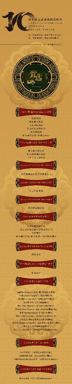 元素甄选榜的颁奖环节尤为引人注目,奖项覆盖了酒店集团、酒店品牌、奢华酒店、设计酒店、商务&商旅酒店、度假酒店、会议酒店、餐厅酒店、酒店公寓、精品酒店、新开业酒店、精英人物、星厨以及特色酒店、社会餐饮、元素优质合作品牌等多个类别。